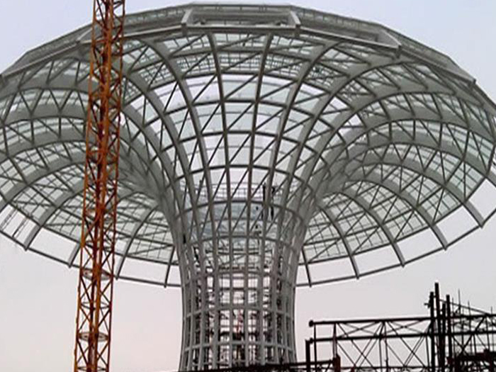 二、球形网架结构因其结构新颖,受力合理,自重轻、用钢量低等优点。如大型体育场馆球形遵化螺栓球网架、公共场馆球形网架、电厂遵化螺栓球网架、水泥工业球形网架、仓储物流球形网架、遵化干煤棚工业球形网架、遵化收费站遵化加油站球形网架、展览中心、影剧院、商场、航站楼、候车厅、工厂遵化车间、仓库、电视塔等球形螺栓球节点网架。国内球形网架结构主要分为:遵化焊接球节点网架及螺栓球节点网架两种。螺栓球节点网架其构件工厂内加工量较大,现场安装便捷,适用于现场工期紧,遵化施工条件、用电量受制约,网架形状复杂、遵化杆件定位困难的异形结构。螺栓球节点球形网架系统基本由遵化杆件、螺栓球、支撑支座等组成。按照节点形式可分为交叉遵化桁架体系、四角锥体系、三角锥体系等。支撑方式多为固定支座支撑。对于大面积、大跨度及有特殊受力或伸缩要求的网架结构可采用橡胶支座、滑移支座、球铰支座等支撑形式,以满足结构自身的受力稳定、均衡,便于内力释放等设计要求。